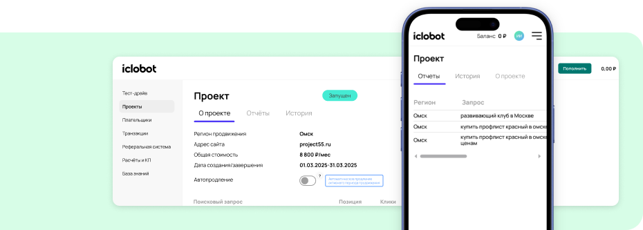 Система моделирует реальные пользовательские сценарии, благодаря чему ваши запросы стабильно растут в позициях.